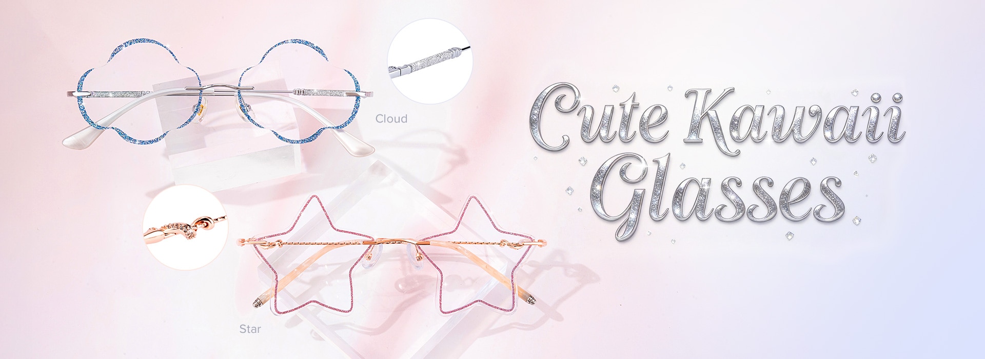 Playful styling shines through these kawaii frames. Cloud glasses, heart shaped glasses frames, and star glasses paCopyrightired with glitter eyeglasses add subtle, whimsical charm.